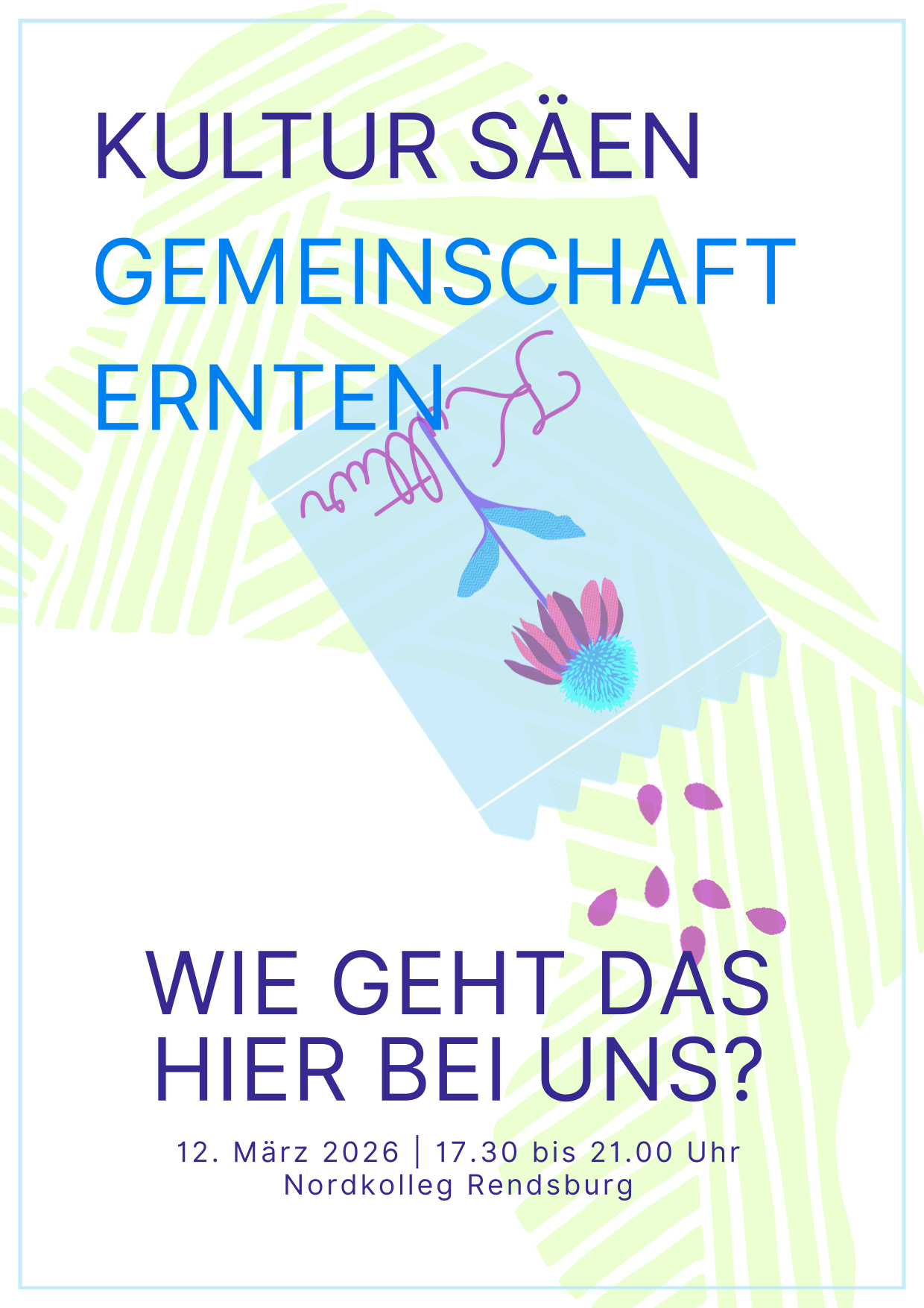 Am 12. März 2026, öffnet das Nordkolleg seine Türen für alle, die Kultur nicht nur erleben, sondern selbst gestalten wollen. Menschen aus Gemeinden, Dörfern und Amtsbereichen kommen hier zusammen, um voneinander zu lernen, sich inspirieren zu lassen und gemeinsam Wege zu finden, wie Kultur dauerhaft Wurzeln schlagen kann.